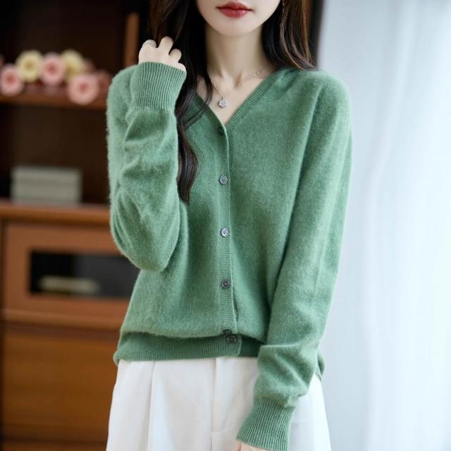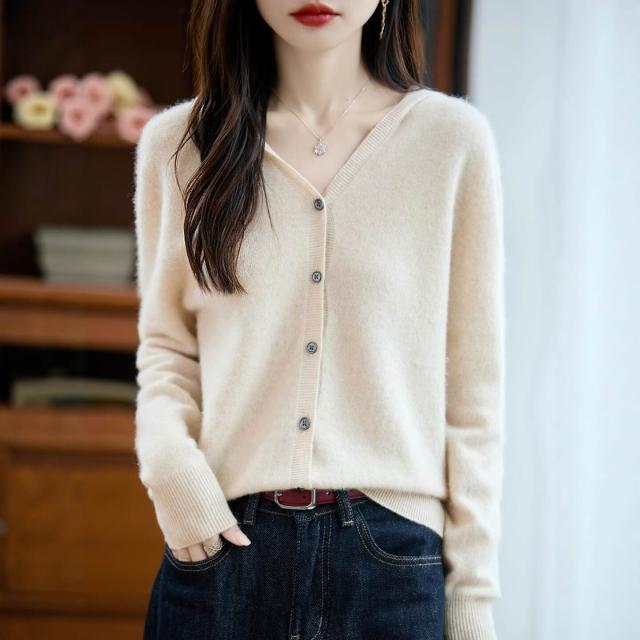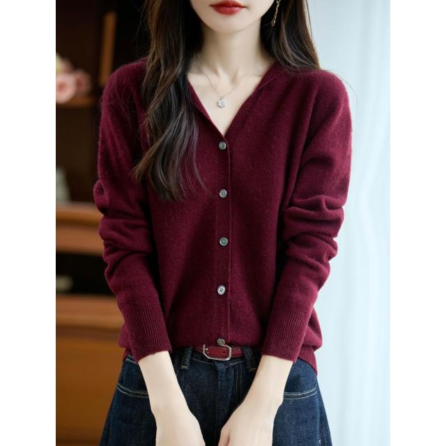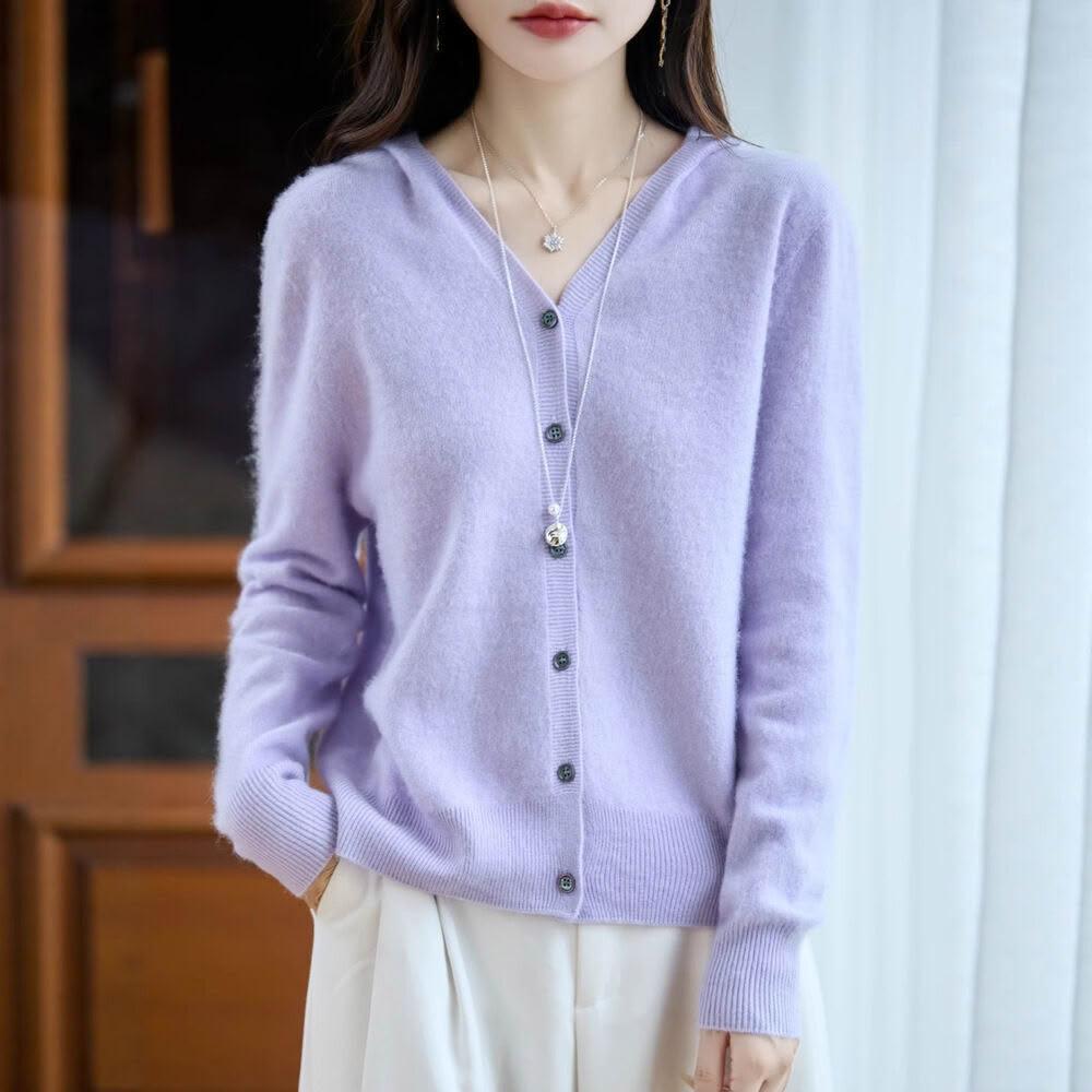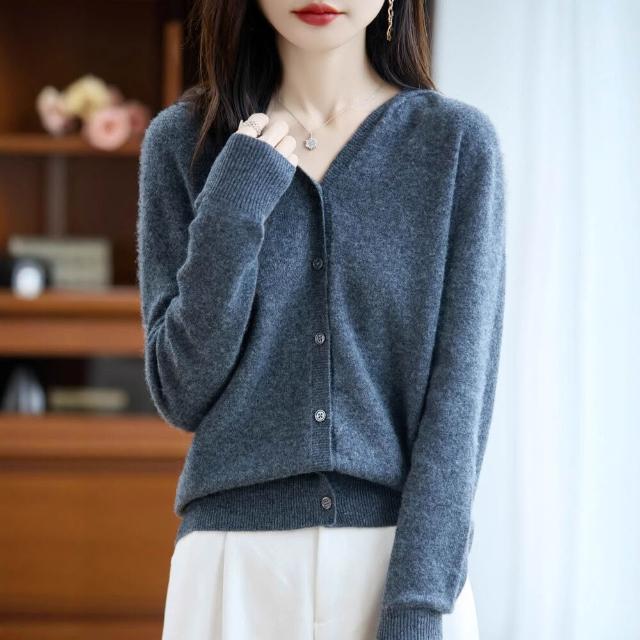 針織外套女春秋冬天v領韓系毛衣開衫洋裝保暖純色寬鬆休閒打底修身秋冬季設計感外套羊毛絨小外套輕薄舒適好穿搭外套針織罩衫上衣