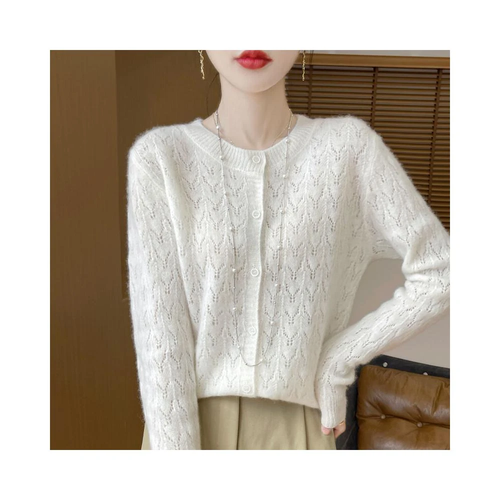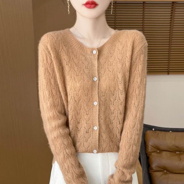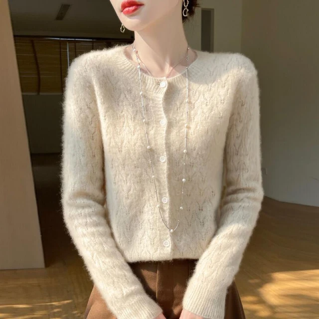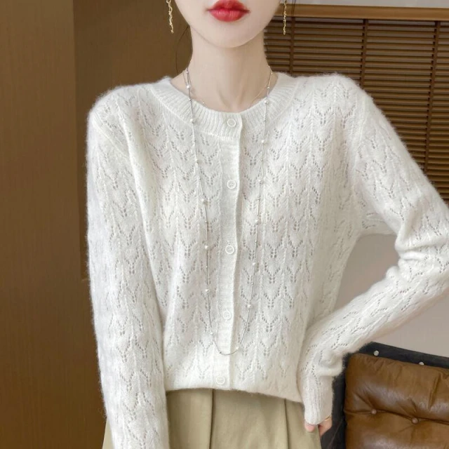 針織外套女羊毛春秋冬天新款毛衣開衫洋裝小外套針織罩衫保暖純色v領寬鬆休閒打底輕薄舒適好穿搭修身秋冬季設計感外套