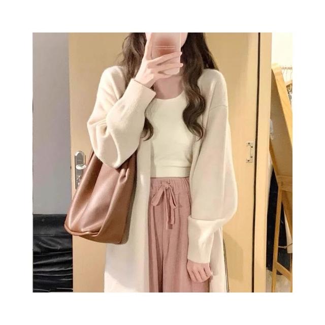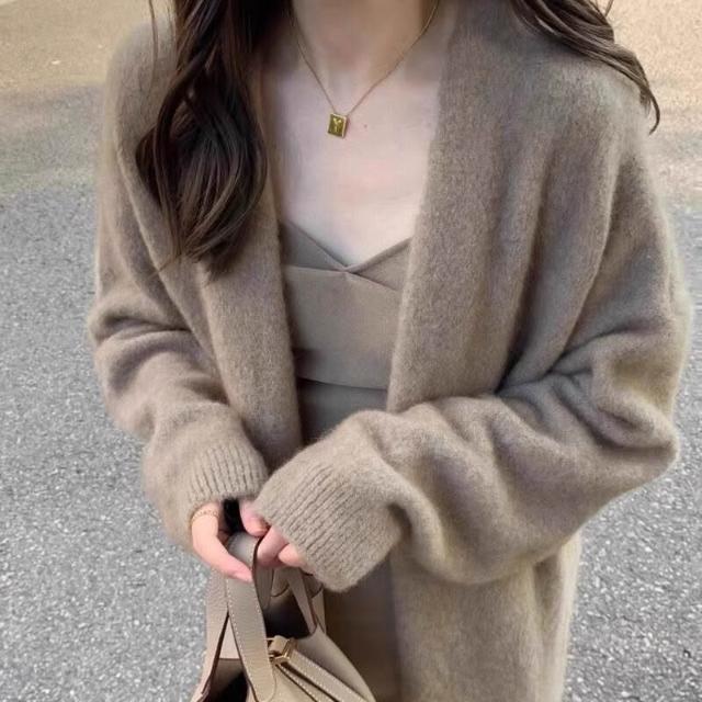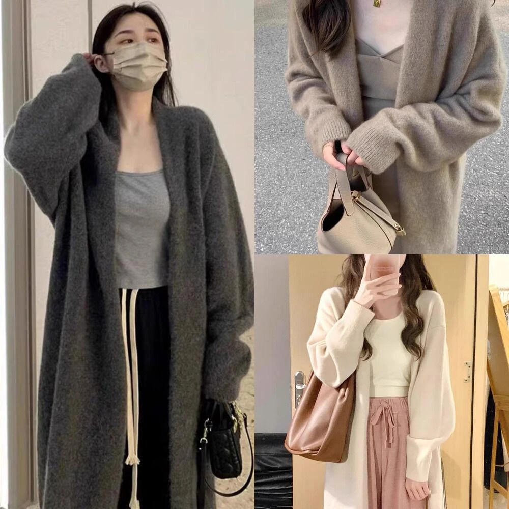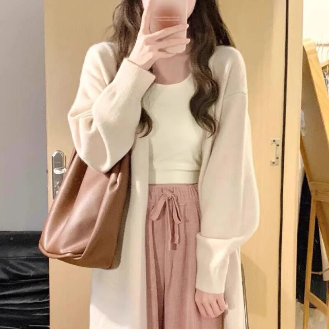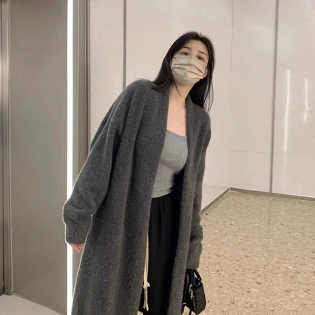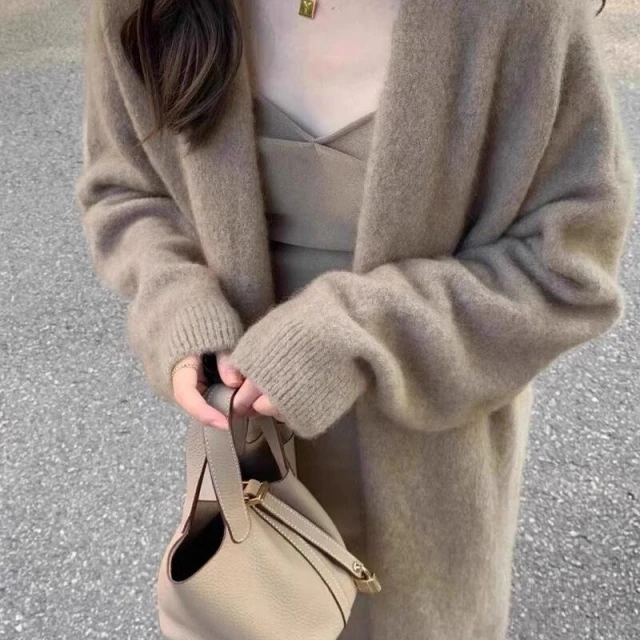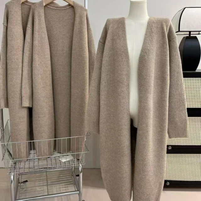 針織外套女中長版春秋冬季新款仿羊毛衣麻花開衫長袖上衣罩衫寬鬆休閒設計感外披輕薄舒適毛呢大衣保暖純色修身洋裝小外套針織衫