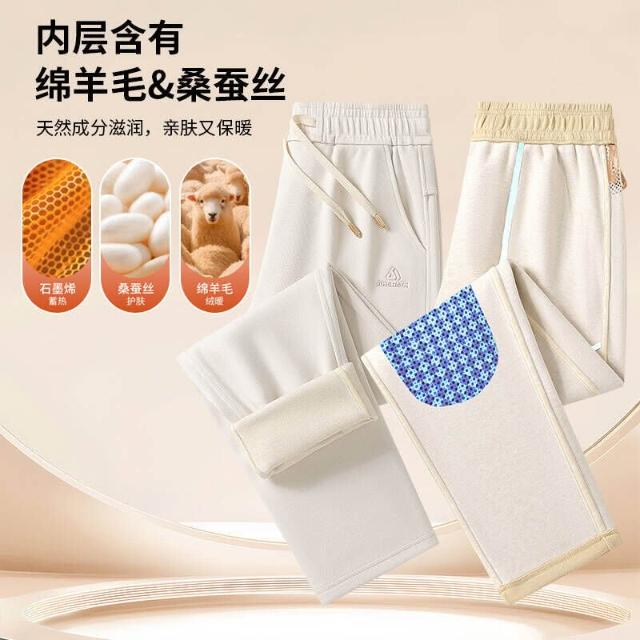 石墨烯加絨加厚休閒保暖褲百搭純色鬆緊褲腰直筒褲工作褲防潮防風護膝男女同款寬鬆直筒平口褲戶外登山滑雪徒步衝鋒褲軟殼長褲