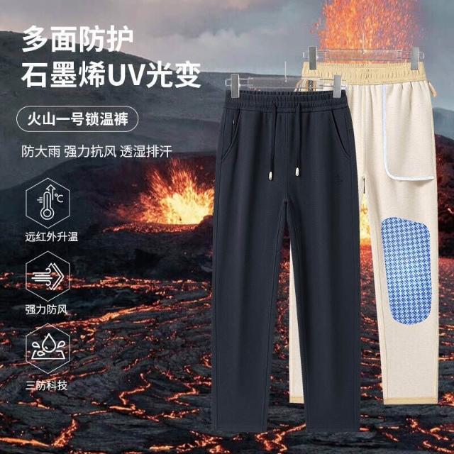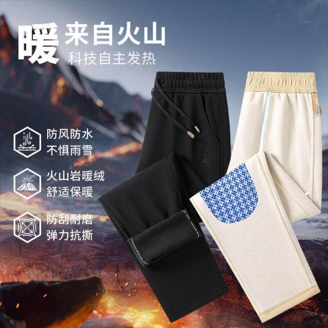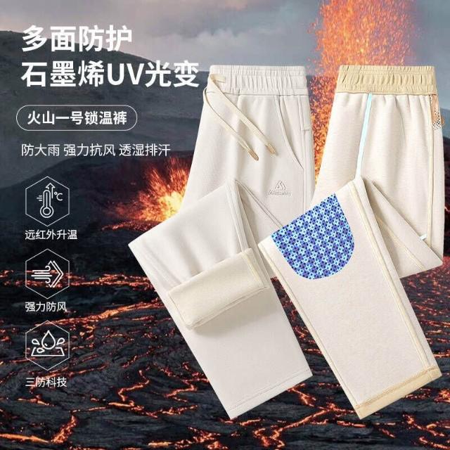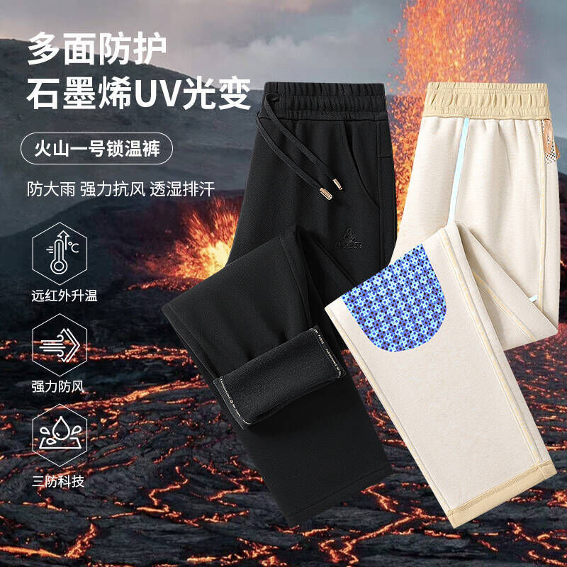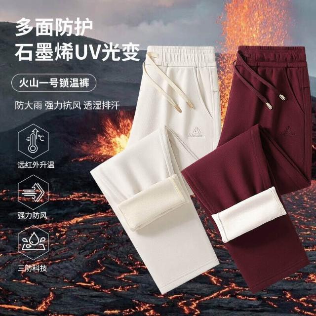 石墨烯加絨加厚休閒保暖褲百搭純色鬆緊褲腰直筒褲工作褲防潮防風護膝男女同款寬鬆直筒平口褲戶外登山滑雪徒步衝鋒褲軟殼長褲