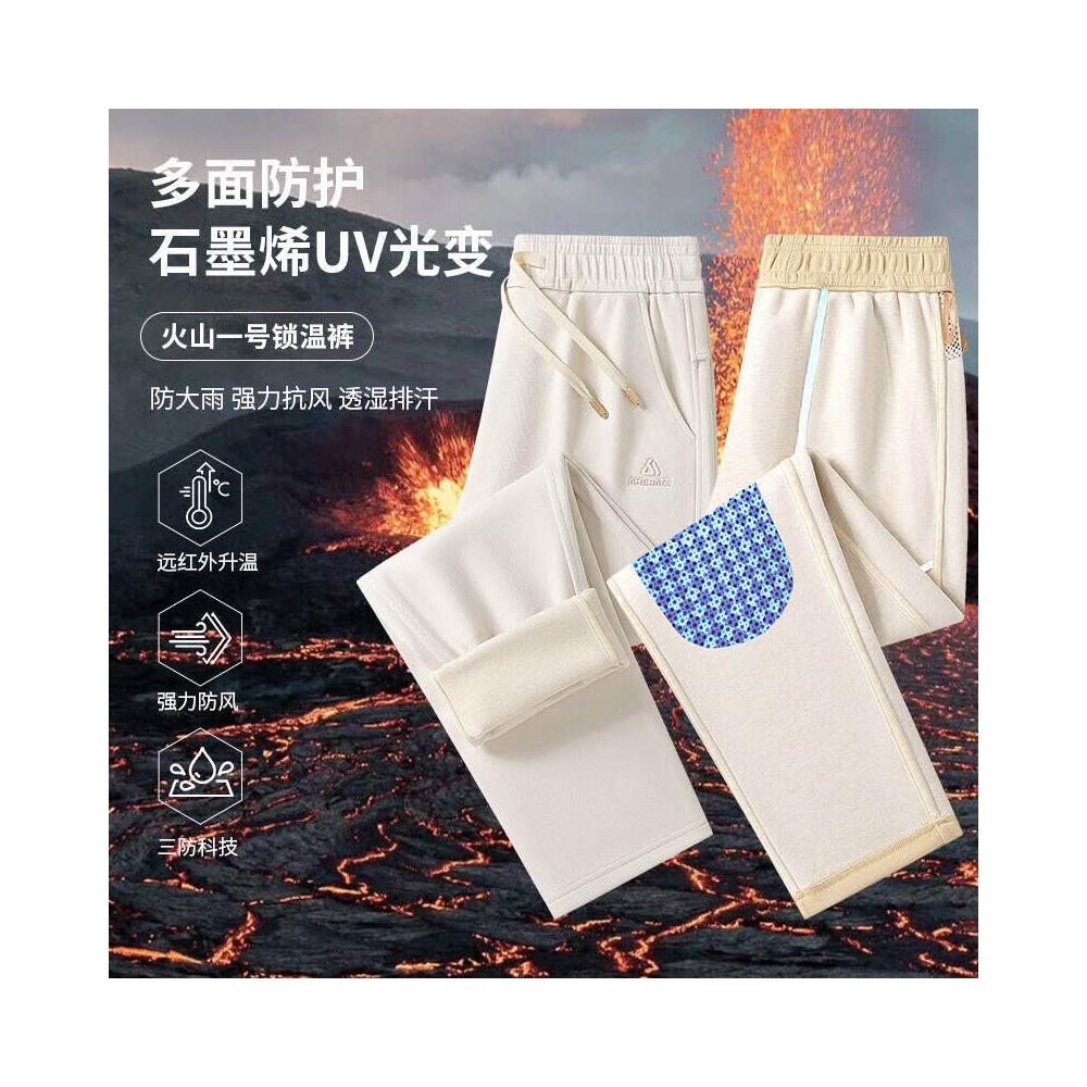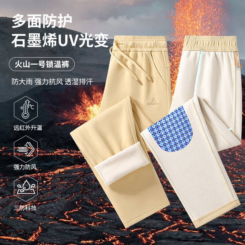 石墨烯加絨加厚休閒保暖褲百搭純色鬆緊褲腰直筒褲工作褲防潮防風護膝男女同款寬鬆直筒平口褲戶外登山滑雪徒步衝鋒褲軟殼長褲