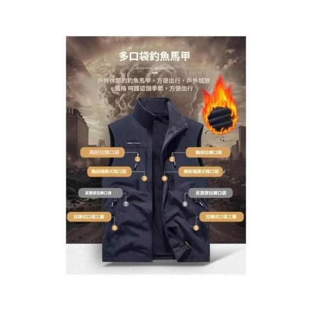 馬甲背心外套男女生大尺碼戶外多口袋加絨加厚雙面穿商務飛行夾克工裝馬甲抓絨衛衣冬秋季防風防寒保暖加厚加絨坎肩無袖外套工作服