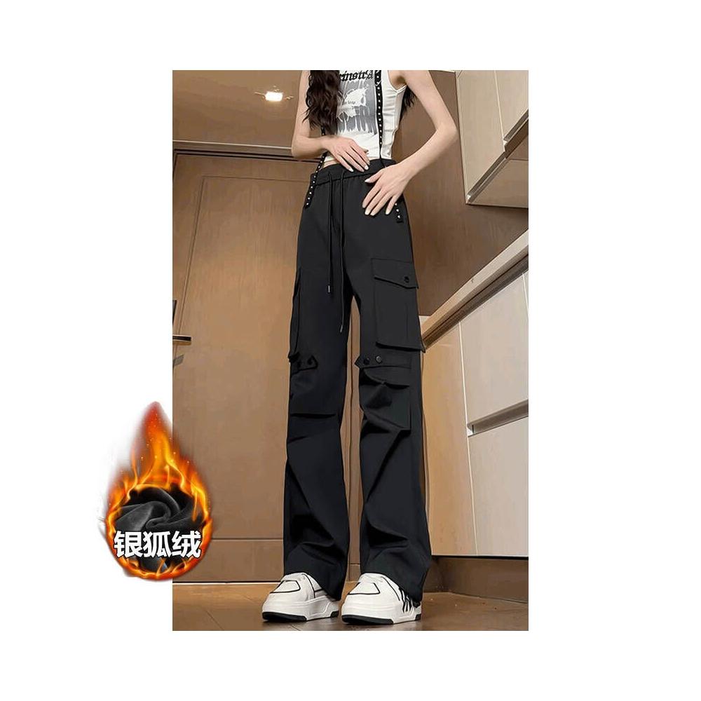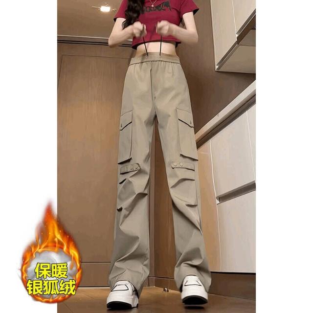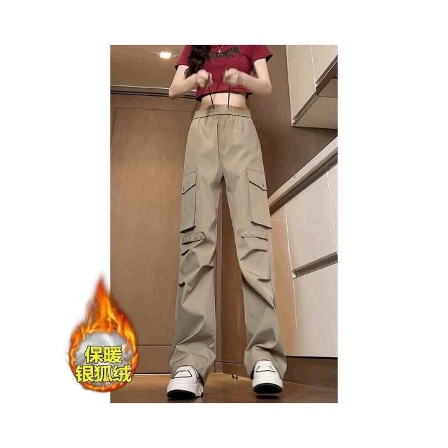 雪褲男女生銀狐絨抗寒工作褲衝鋒褲工裝褲寬鬆直筒褲休閒褲防風防水棉褲雪地滑雪褲保暖褲秋冬天新品多口袋鬆緊腰加絨加厚運動褲