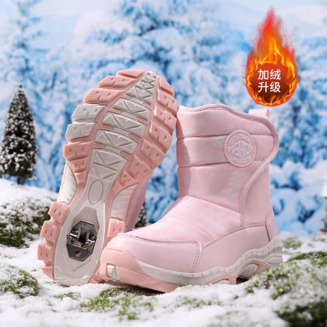 雪靴女冰爪雪地靴中筒防滑防水女款加絨保暖長靴子女童厚底極寒雪地鞋大尺碼冬季戶外登山防寒女鞋韓國增高寬版耐磨登山鞋兒童雪鞋