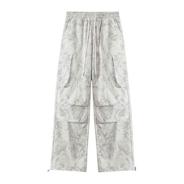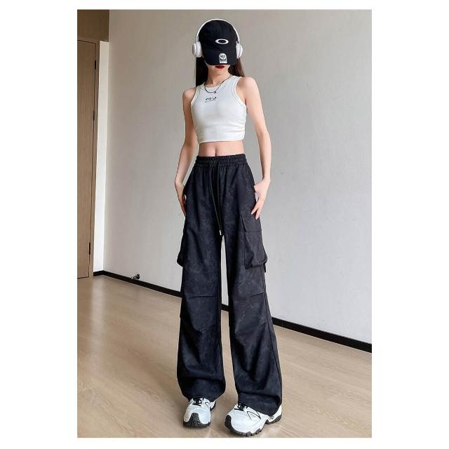 運動長褲女夏季寬鬆透氣大碼高彈涼感褲冰絲速乾吸濕排汗直筒工作褲夏天闊腿跑步健身口袋拉鏈休閒褲女生鬆緊居家扎染工裝褲高腰顯瘦束腳女褲登山降落闊腿褲兩穿傘兵褲