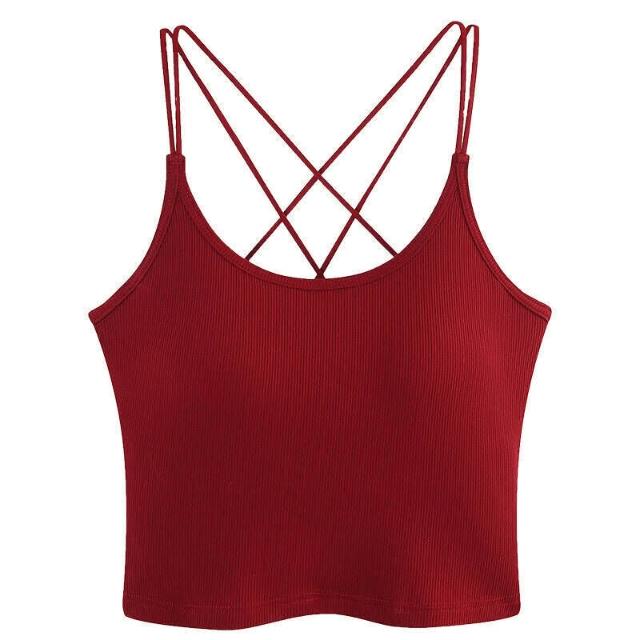 背心女款夏季運動小吊帶外穿夏內搭帶胸墊美背文胸一體式打底瑜伽上衣舒適修身親膚透氣女裝內衣無痕帶胸墊純棉美背打底方領上衣