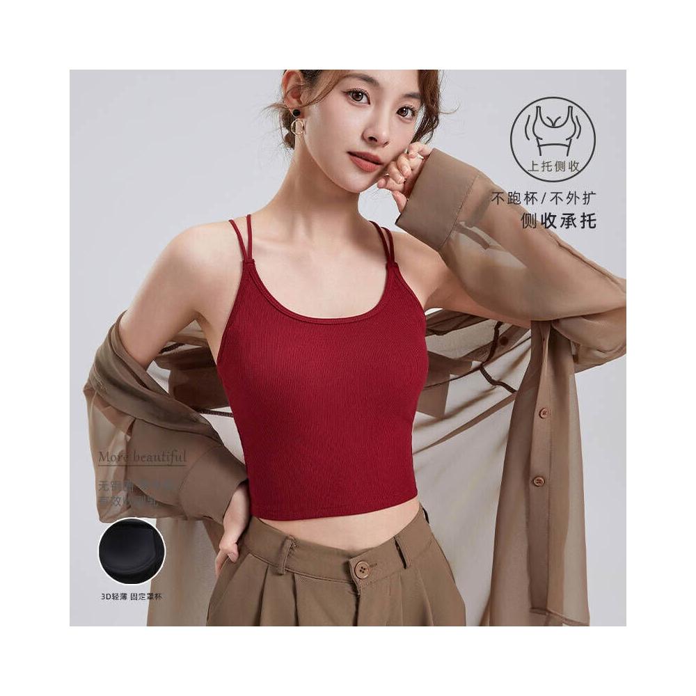 背心女款夏季運動小吊帶外穿夏內搭帶胸墊美背文胸一體式打底瑜伽上衣舒適修身親膚透氣女裝內衣無痕帶胸墊純棉美背打底方領上衣