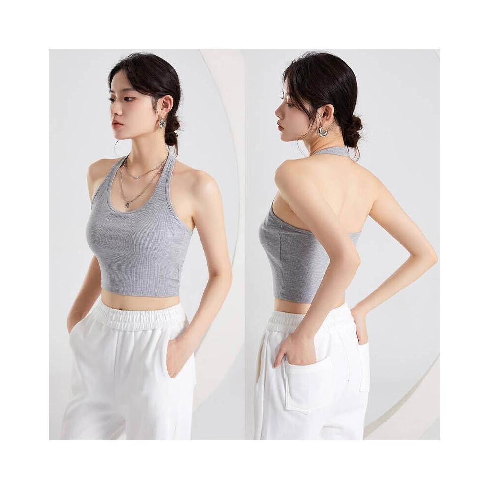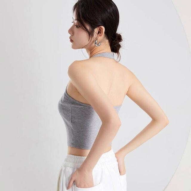 背心女款夏季掛脖吊帶背心女內搭帶胸墊一體短款上衣夏外穿內搭打底衫美背打底V領上衣時尚顯瘦舒適修身親膚透氣無袖運動背心
