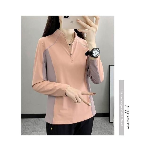 長袖上衣女春秋冬季打底衫棉質保暖衣內搭大尺碼學生半拉鏈立領大學T休閒寬鬆運動上衣工作通勤百搭長版上衣發熱衣女生衛衣T恤