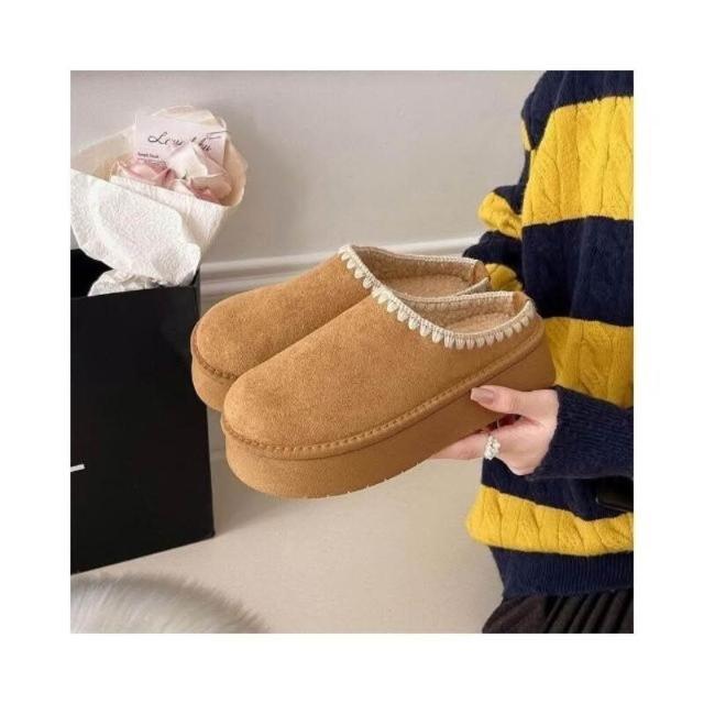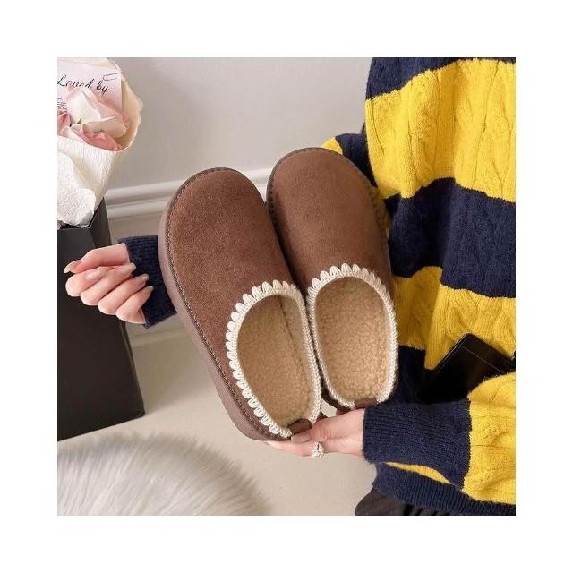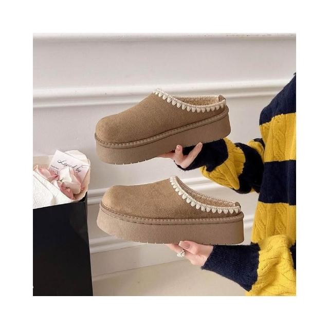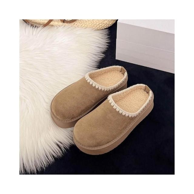 穆勒鞋女勃肯鞋拖鞋包頭半拖羊羔毛大棉拖鞋博肯鞋休閑女鞋厚底博肯鞋磨砂平底一腳蹬軟底軟面舒適醜萌半拖包腳時尚百搭外穿懶人鞋