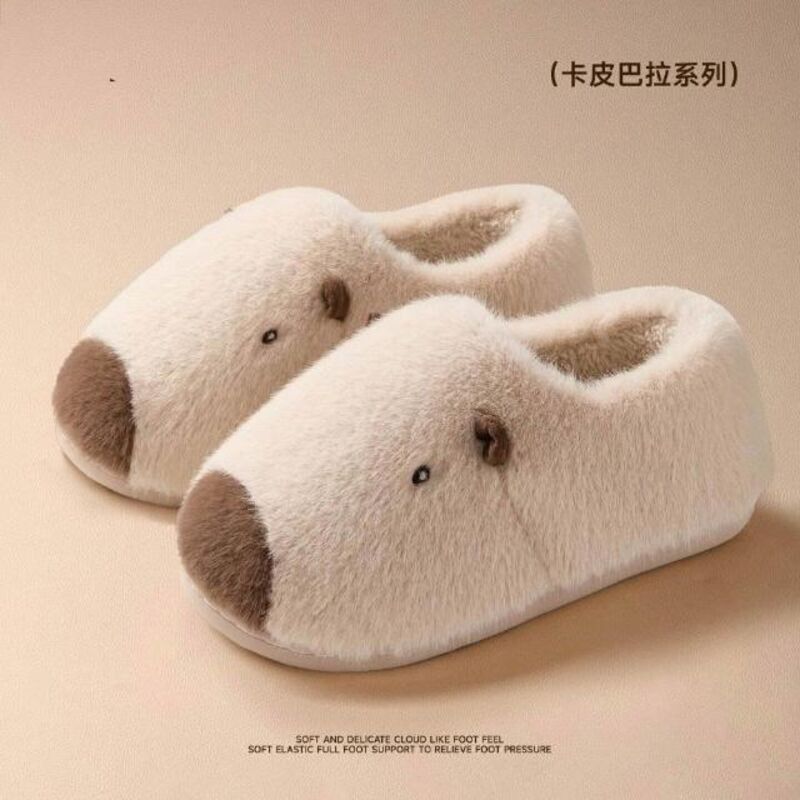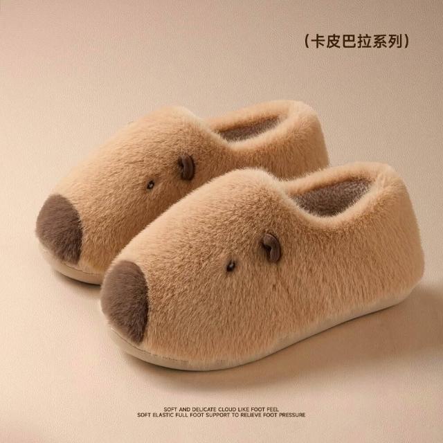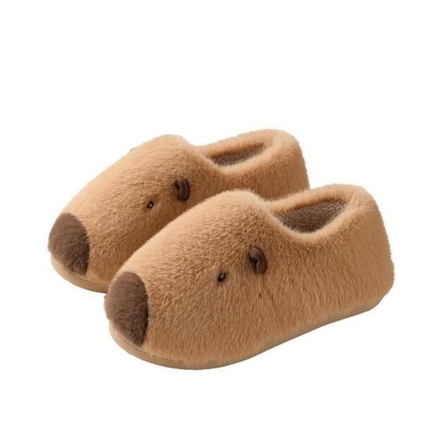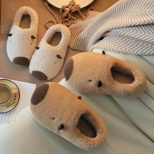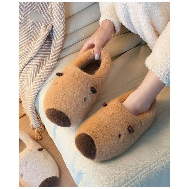 拖鞋男女同款毛絨拖鞋可外穿室內拖鞋懶人鞋秋冬季卡皮巴拉情侶毛絨拖鞋防風防寒防滑止滑軟底棉拖鞋一腳蹬懶人鞋大尺碼大尺碼可愛