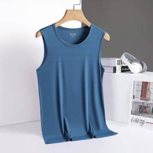 現貨背心男冰絲涼感無袖背心大尺碼圓領t恤戶外登山寬衫吸濕排汗寬鬆透氣網眼上衣輕薄彈力速乾男生籃球柔軟舒適背心冰涼運動上衣