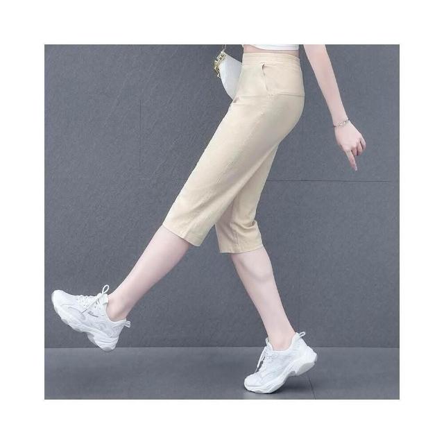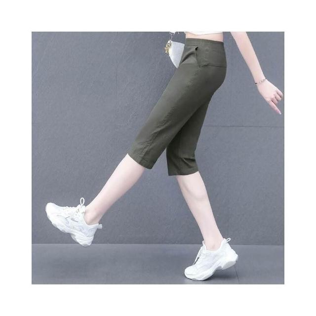 涼感褲女夏天薄款透氣彈力寬鬆大呎碼七分褲工作時尚百搭運動短褲速乾吸濕排汗戶外跑步直筒休閒褲涼爽健身慢跑下著棉質短褲