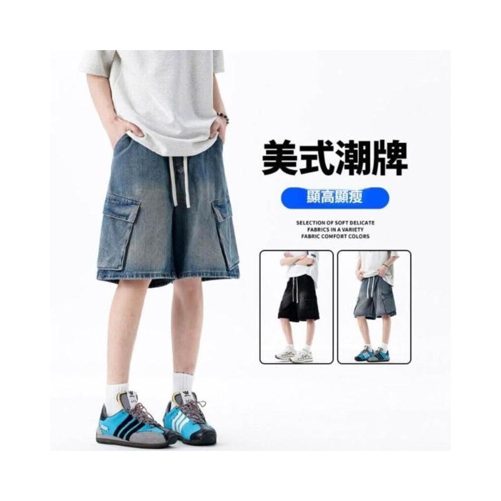 牛仔褲男日常休閒穿搭百搭顯瘦修腿高腰彈力大尺碼寬鬆直筒機能涼感透氣耐磨抗皺戶外通勤柔軟親膚不易褪色變形輕便實用耐看牛仔短褲男