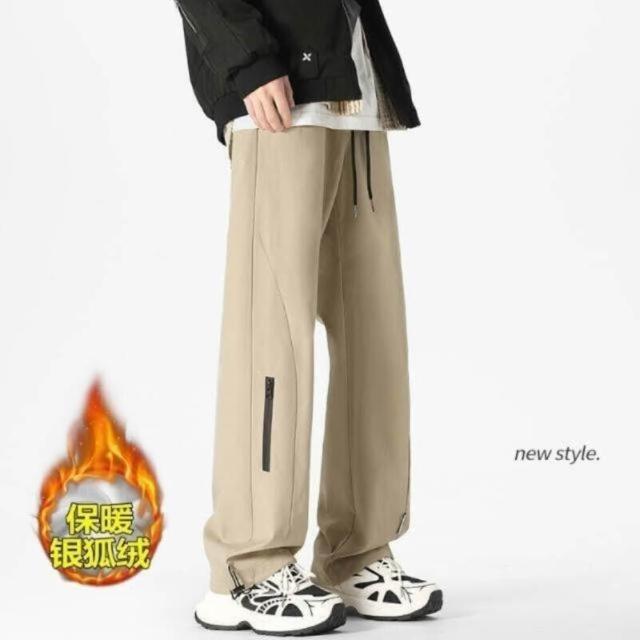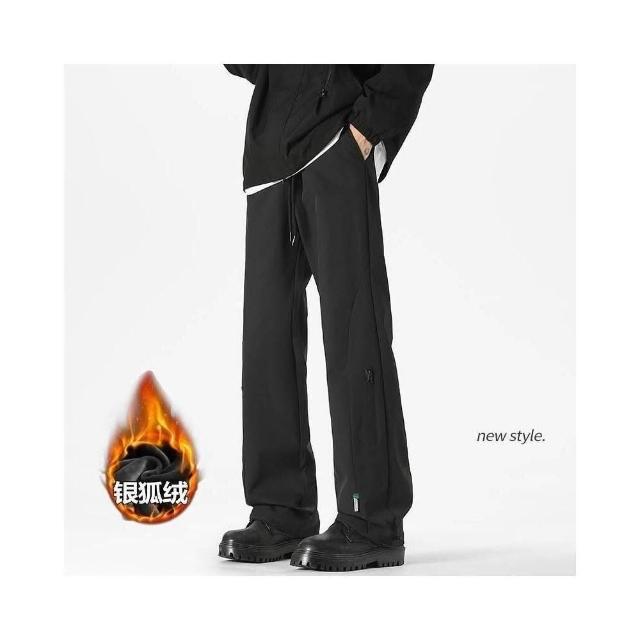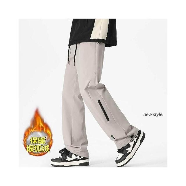 休閒褲保暖加絨銀狐絨沖鋒褲防潑水束腳闊腿褲男服裝內著男裝下著休閒褲