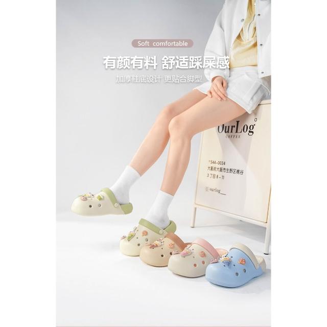 洞洞鞋女夏季EVA軟底舒適寬楦包頭拖鞋透氣運動涼鞋防滑室內拖鞋增高耐磨厚底涼鞋大尺碼一腳蹬懶人鞋輕量包頭拖鞋沙灘鞋涼拖鞋