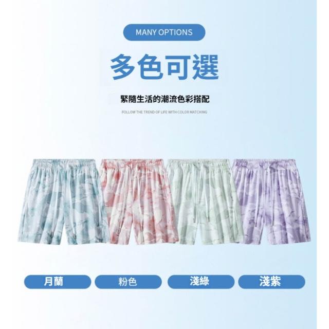 休閒褲女款夏季冰感迷彩休閑空調褲子冰絲短褲女冰絲速幹透氣寬松戶外跑步運動四分褲健身褲沙灘褲鬆緊居家涼感褲