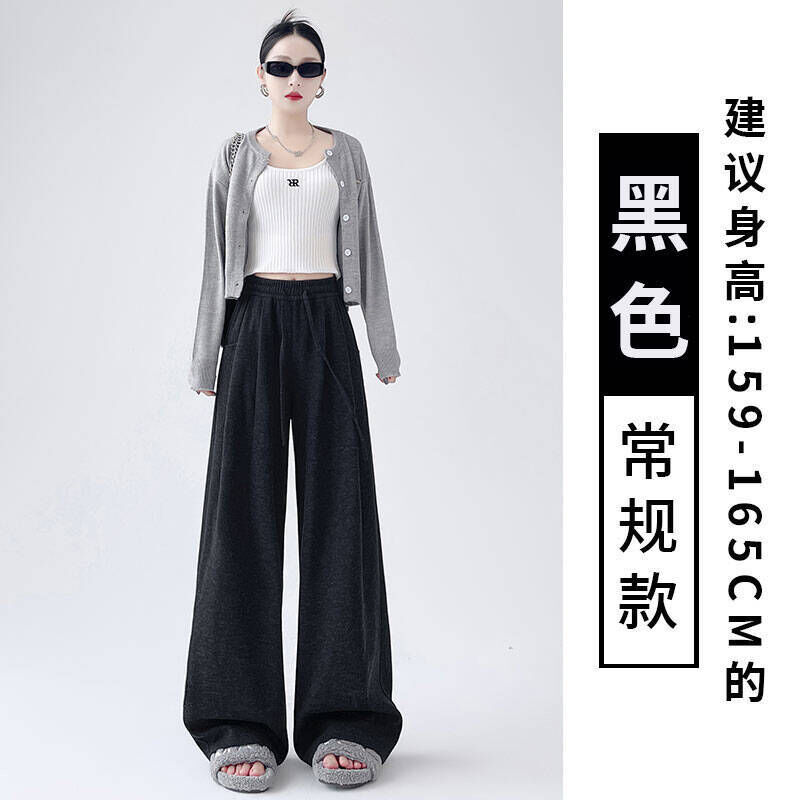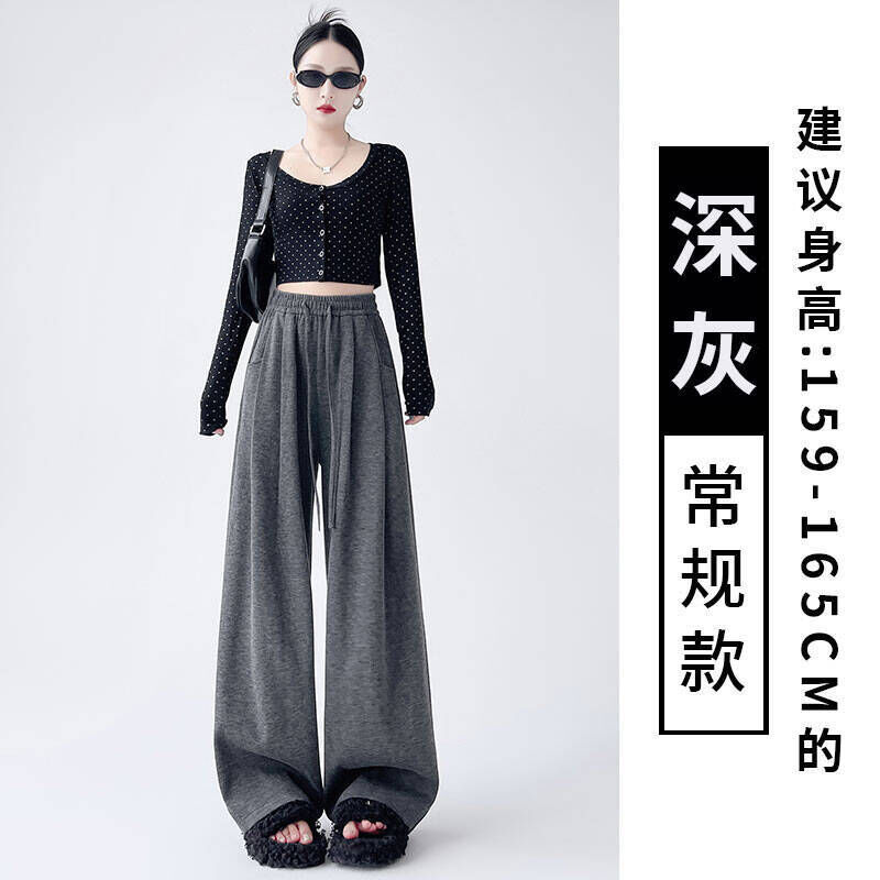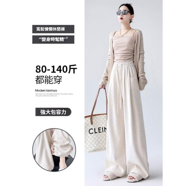 休閒褲女款春秋季薄款透氣深灰色糯米彎刀褲女新款大尺碼顯瘦垂感梨型身材直筒闊腿褲簡約百搭高腰寬褲女長褲顯瘦直筒傘兵褲鬆緊腰居家工裝褲