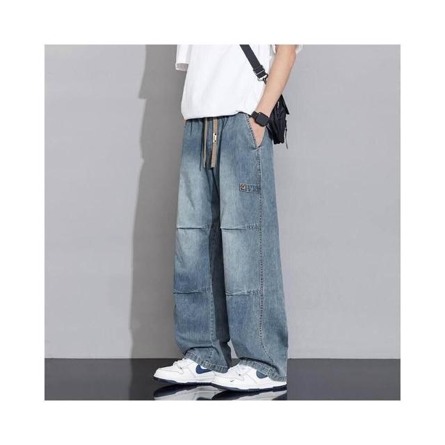 牛仔褲男夏季彈性鬆緊腰大呎碼直筒運動長褲寬鬆透氣中年爸爸多口袋工作褲春秋顯瘦闊腿寬褲復古休閒褲青少年小個子褲子耐磨工裝褲