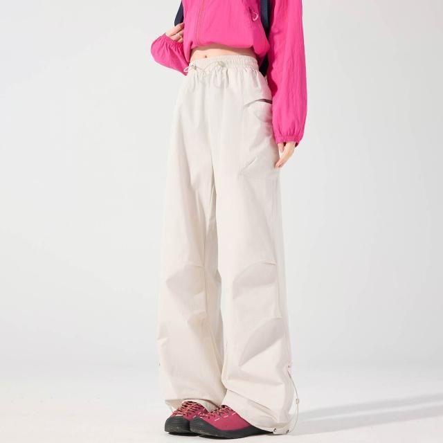 休閒褲女款春夏季薄款透氣純色彎刀褲女新款大尺碼顯瘦垂感梨型身材直筒闊腿褲簡約百搭高腰寬褲女長褲鬆緊腰居家工裝褲顯瘦直筒傘兵褲