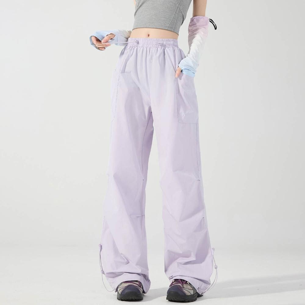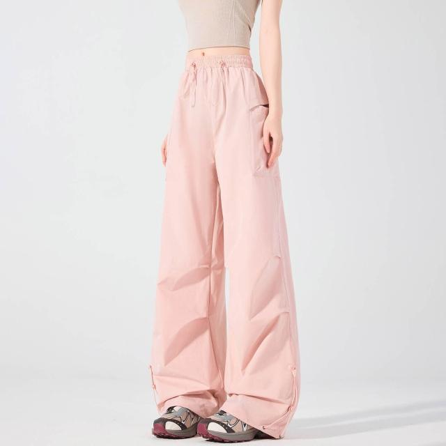 休閒褲女款春夏季薄款透氣純色彎刀褲女新款大尺碼顯瘦垂感梨型身材直筒闊腿褲簡約百搭高腰寬褲女長褲鬆緊腰居家工裝褲顯瘦直筒傘兵褲