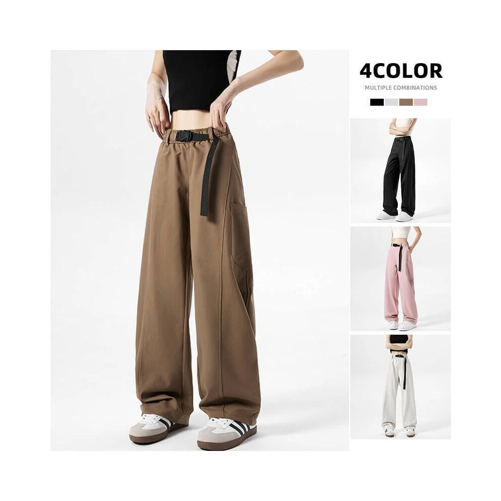 休閒褲女款夏季冰絲薄款透氣防風加大尺碼寬松徒步登山彎刀拖地褲男青春流行潮流直筒運動長褲舒適多功能高品質休閒工裝彎刀褲機能傘兵戶外登山速乾冰感親膚下著女褲