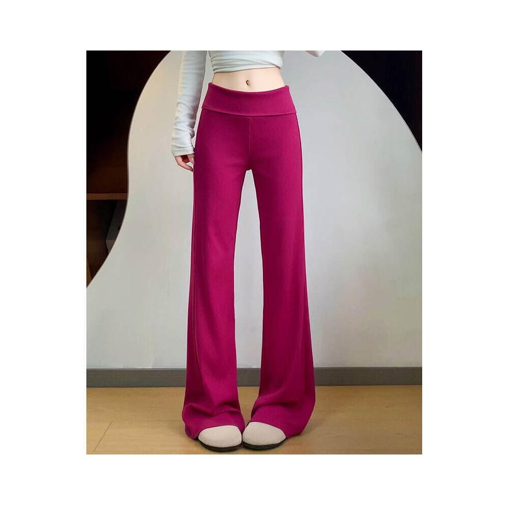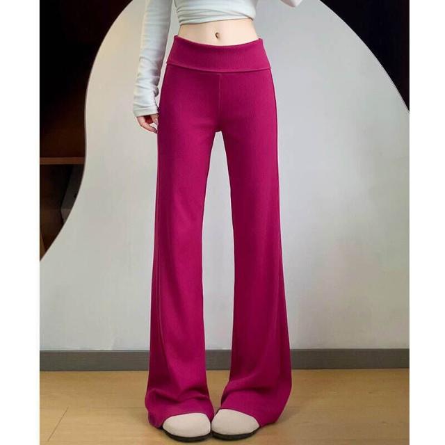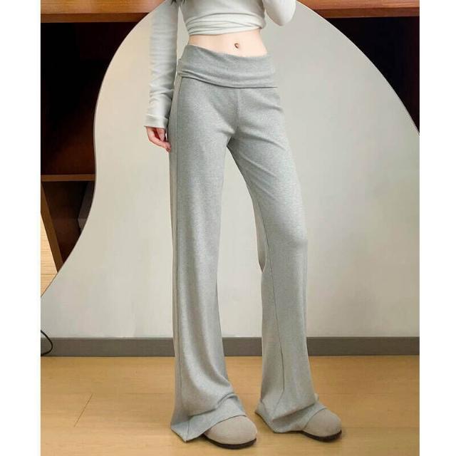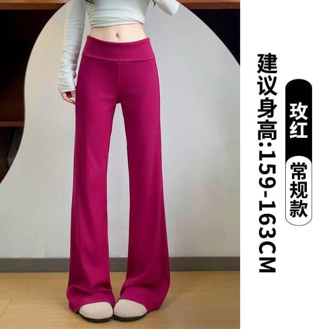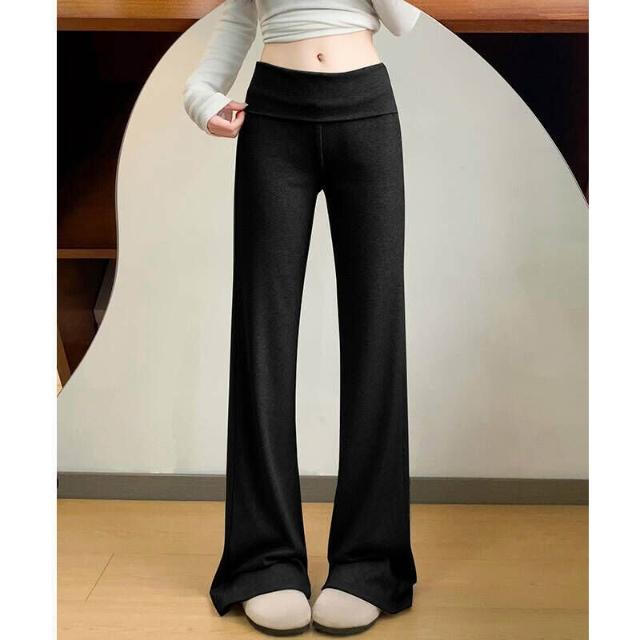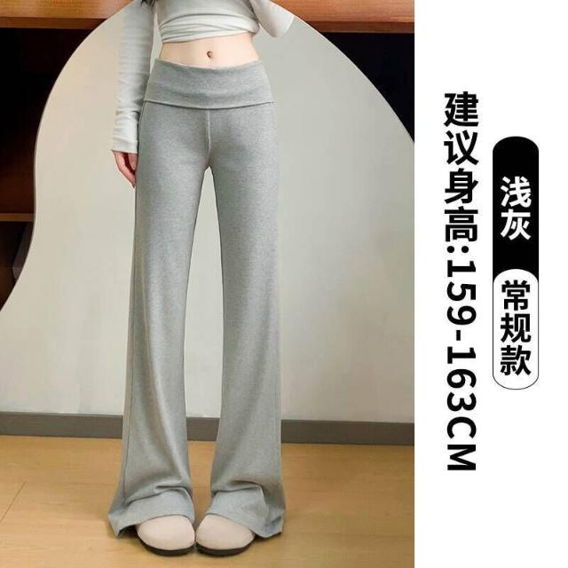 休閒褲女款夏季翻腰運動微喇褲女春夏季薄款小個子運動衛褲休閑慵懶顯瘦喇叭褲薄款透氣寬松拖地彎刀褲女褲鬆緊腰居家親膚直筒涼感褲