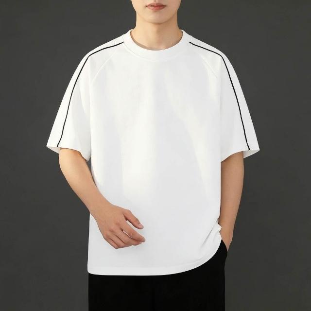 短袖T恤男款春夏季寬松潮流圓領t恤簡約風撞色拼接上衣夏季男生短袖休閑透氣運動上衣吸濕透氣排汗衣彈力跑步健身運動上衣美式百搭休閑上衣