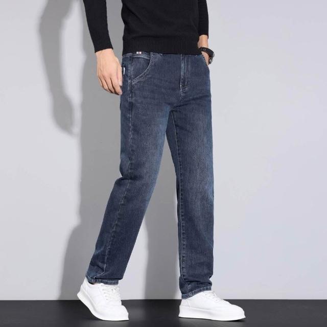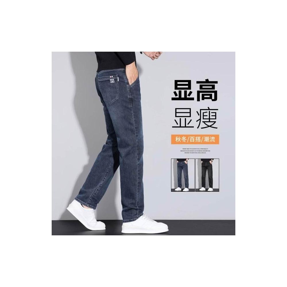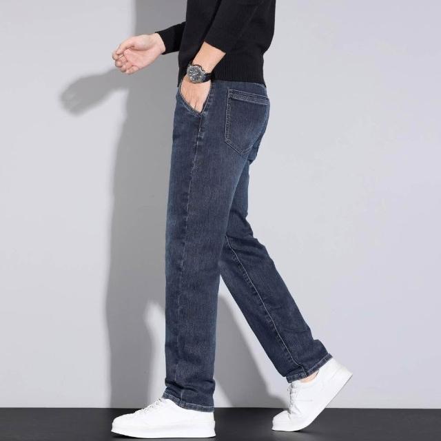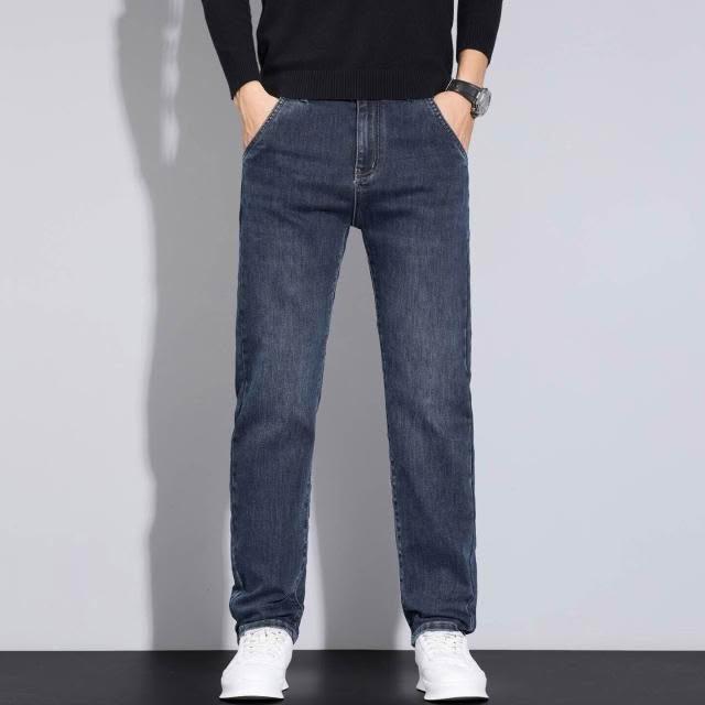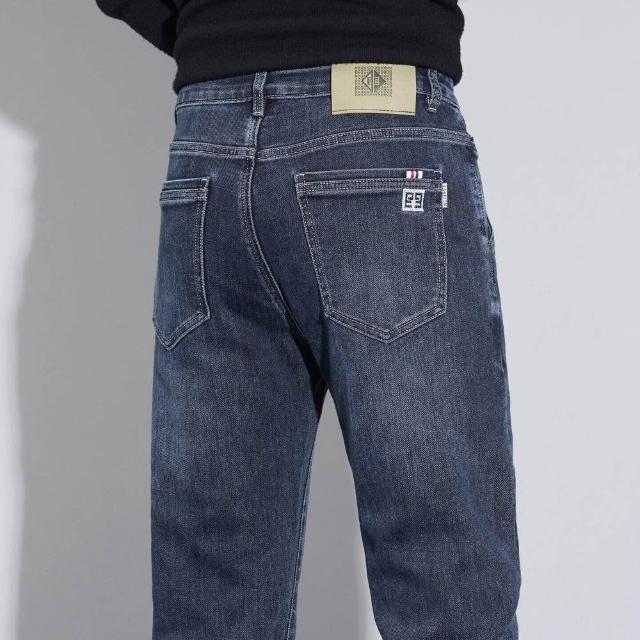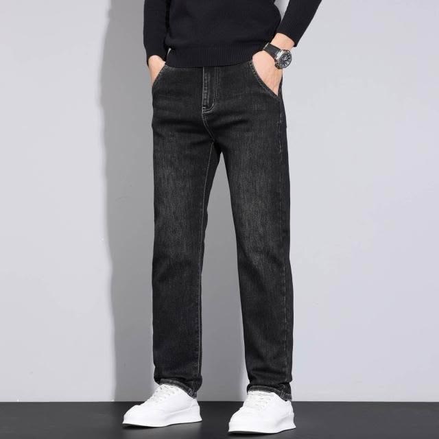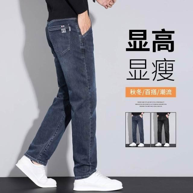 牛仔褲男秋冬修身彈力小腳長褲通勤厚磅保暖低腰直筒耐磨工作做舊垂感休閒水洗紳士中年牛仔工裝褲男牛仔大尺碼加厚春秋商務長褲男