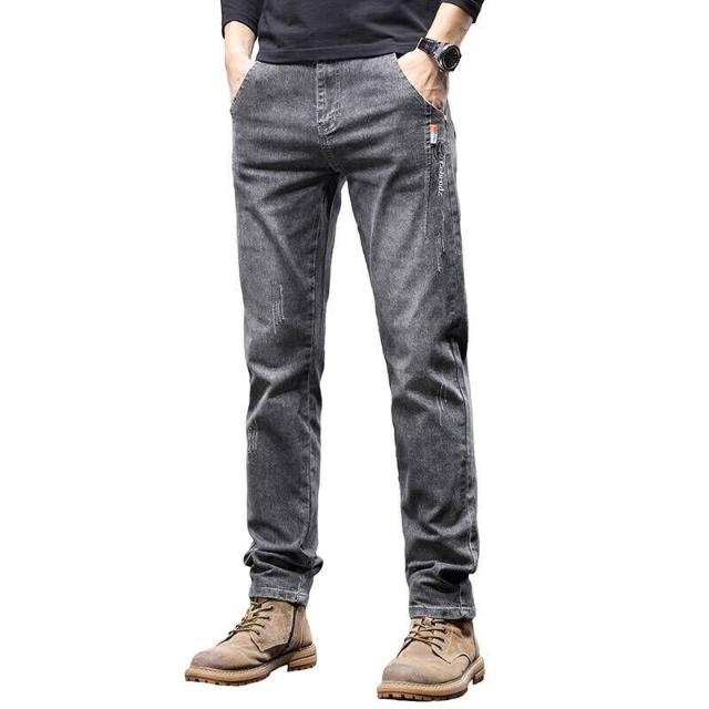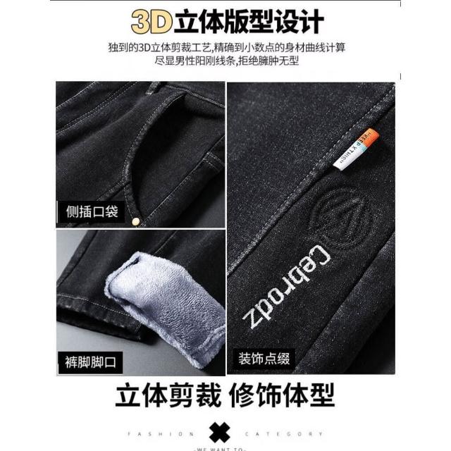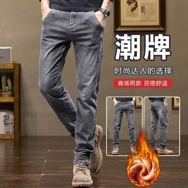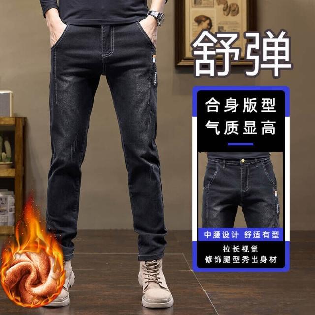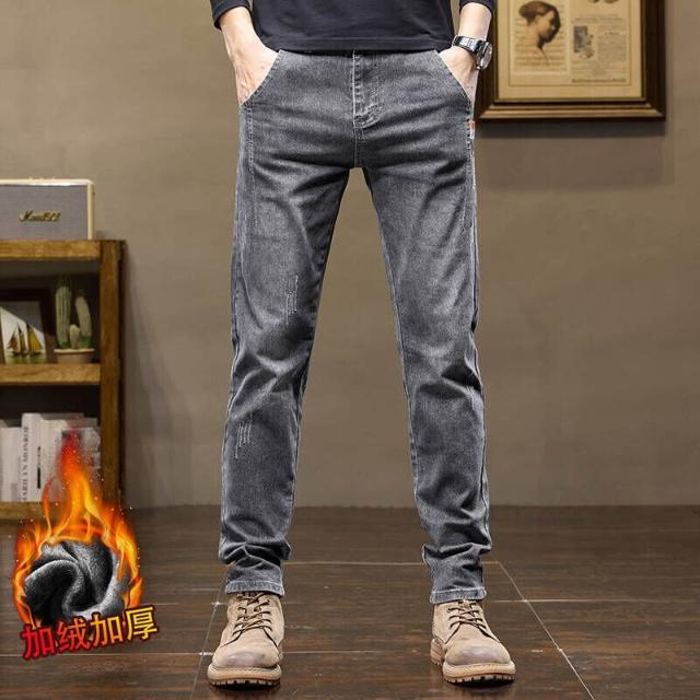 牛仔褲男商務秋冬內磨毛修身彈力小腳長褲通勤加絨刷毛厚磅保暖低腰直筒耐磨工作做舊垂感休閒水洗紳士牛仔中年工裝褲男牛仔大尺碼