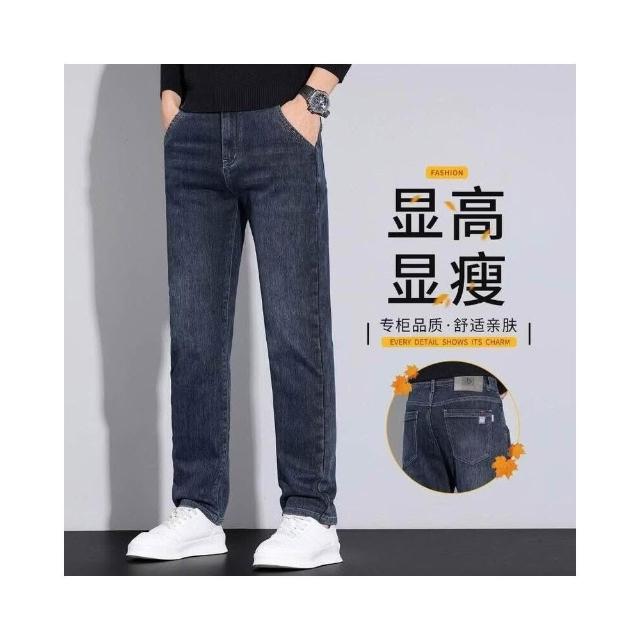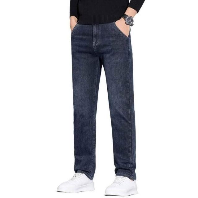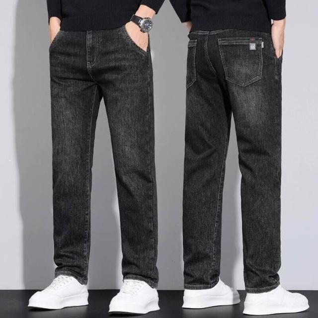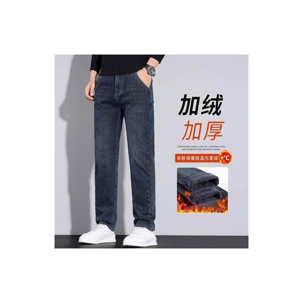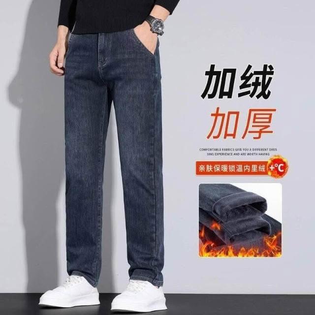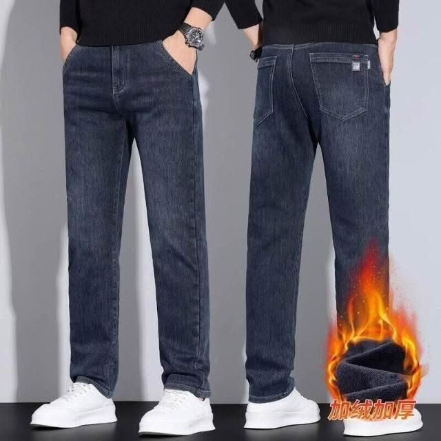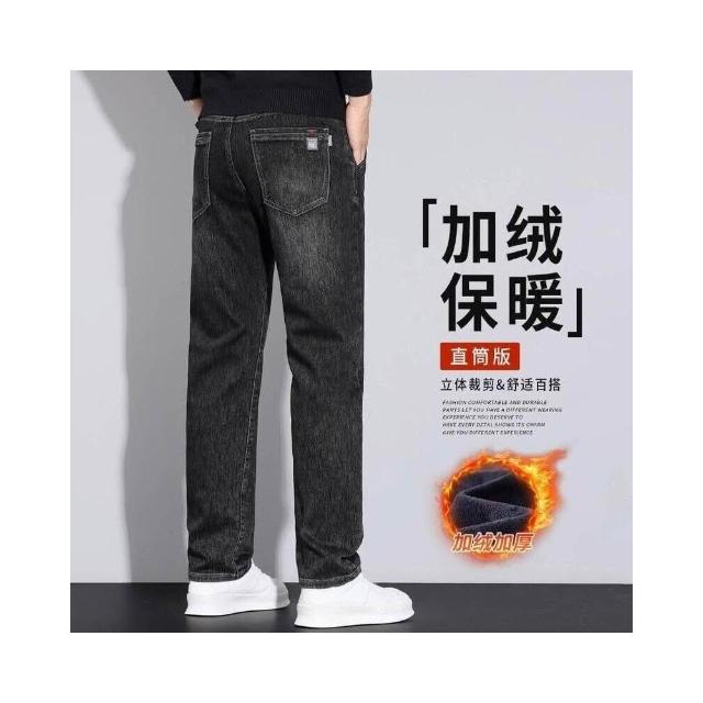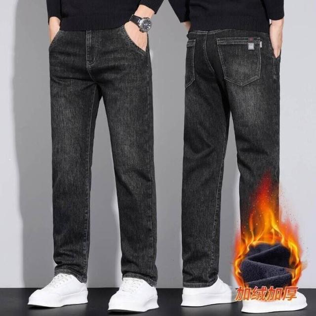 直筒牛仔褲男秋冬季加絨防風保暖褲刷毛耐磨工作褲男款彈力緊身顯瘦褲子復古大尺碼彈性寬褲男生修身牛仔長褲運動休閒褲男士登山褲