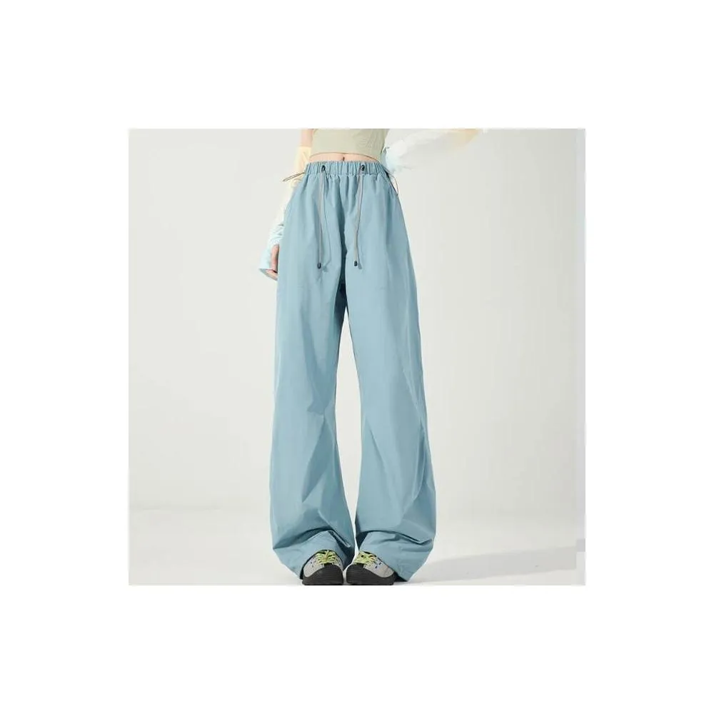 台灣現貨24小時發出 休閒褲女款夏季冰絲薄款透氣防風加大尺碼寬松徒步登山彎刀拖地褲夏季空調褲女士束腳傘兵速幹褲戶外薄款寬松休閑工裝褲百搭直筒運動長褲戶外登山速乾冰感親膚下著女褲
