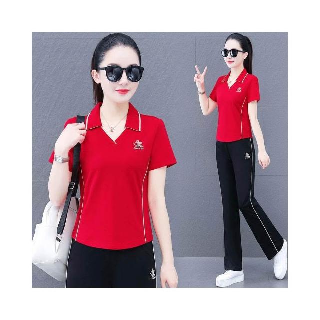 涼感衣冰絲衣套裝運動套裝女冰絲涼感速乾短袖長褲兩件式夏季顯瘦休閒套裝銹標冰絲短袖套裝天絲羅馬運動服兩件套高爾夫球衫透氣不粘身寬鬆束腳吸濕排汗速乾大尺碼