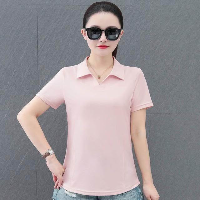POLO衫領短袖t恤女短款夏季修身V領純色圓弧下擺減齡潮流正肩上衣冰絲短袖 POLO 衫素色百搭速乾親膚通勤涼感舒適翻領透氣