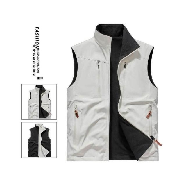 背心男春秋季中青年雙面穿多口袋工裝外套立領無坎肩寬鬆抓絨背心休閑透氣跑步健身運動外套修身男裝運動上衣彈性T恤柔軟工作通勤簡約無袖休閒外套
