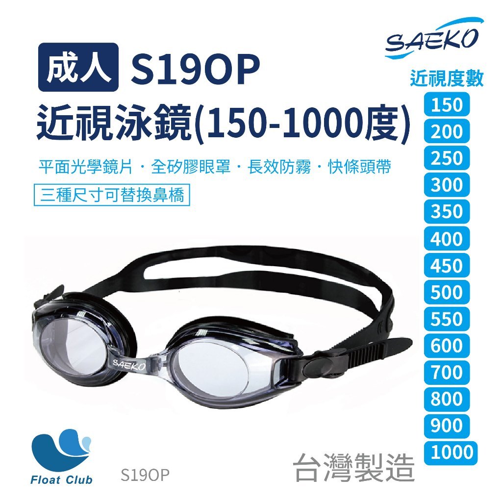 SAEKO正光 台灣製 近視泳鏡 S19OP 廣角鏡片 可換鼻橋 長泳舒適型