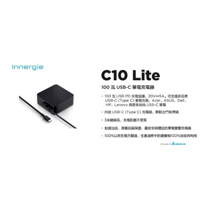 Innergie加送清潔組台達電 Innergie C10 Lite 100W USB-C 筆電充電器 TYPE-C充電器 100瓦