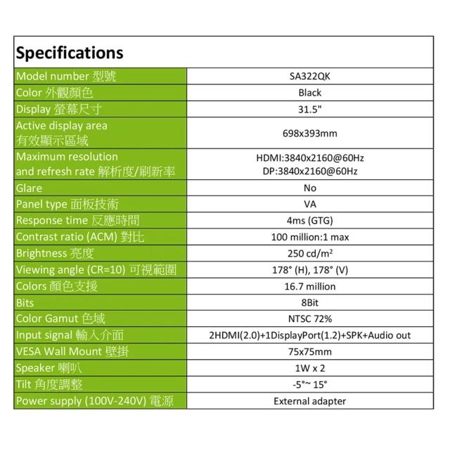 Acer 宏碁雙12 免運4K高畫質宏碁Acer SA322QK 超薄護眼螢幕32型/60Hz/4ms/HDMI/DP-僅箱汙福利品