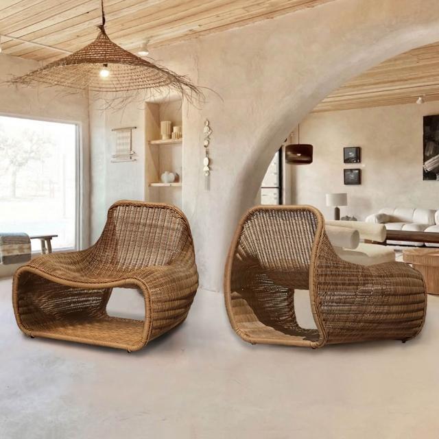 大綠地家具免運✨戶外藤編單人沙發 原藤造型椅子 手工塑藤編織 峇厘島侘寂風格 特色空間椅凳推薦 防水耐曬 陽台休閒椅