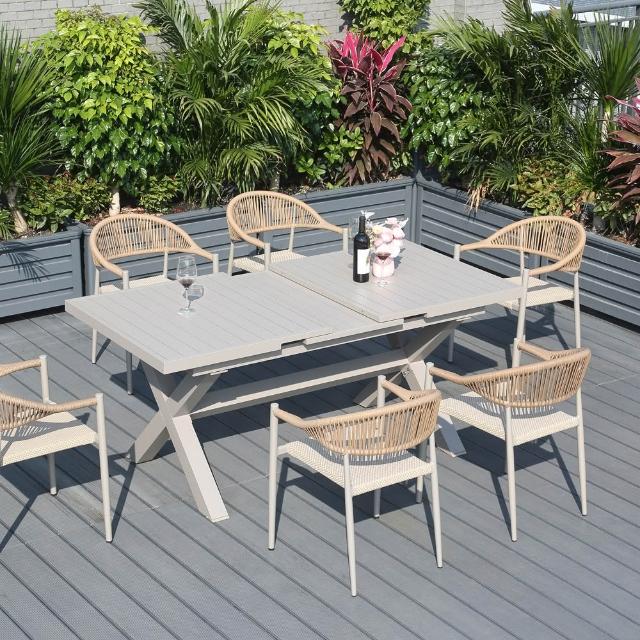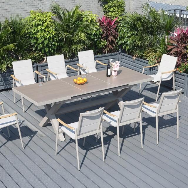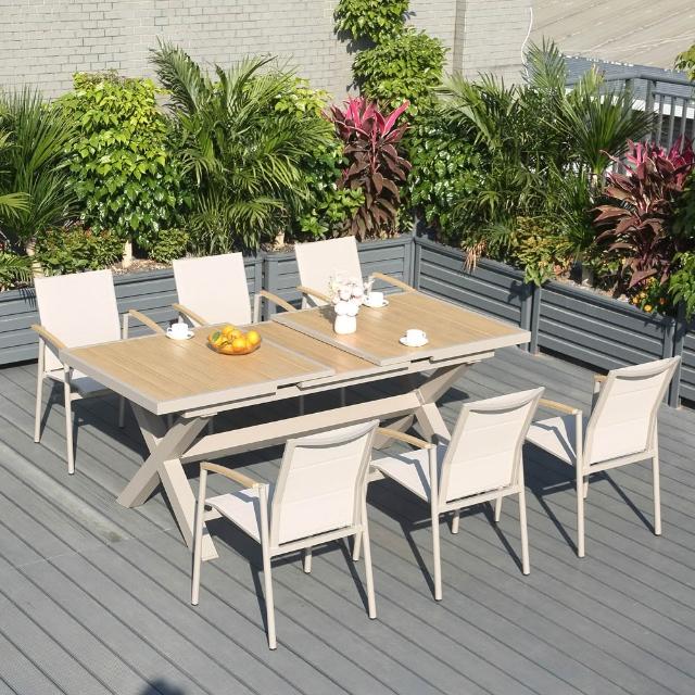免運戶外可調式拉伸餐桌 多款桌面 塑木/鋁合金/岩板風格 現代商用設計家具 頂樓露臺空中花園 餐廳民宿飯店適用