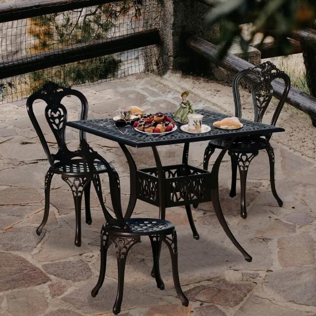 戶外鑄鋁餐椅 花紋方桌圓桌組 庭園陽台咖啡桌椅 歐式復古設計 餐廳飯店商用