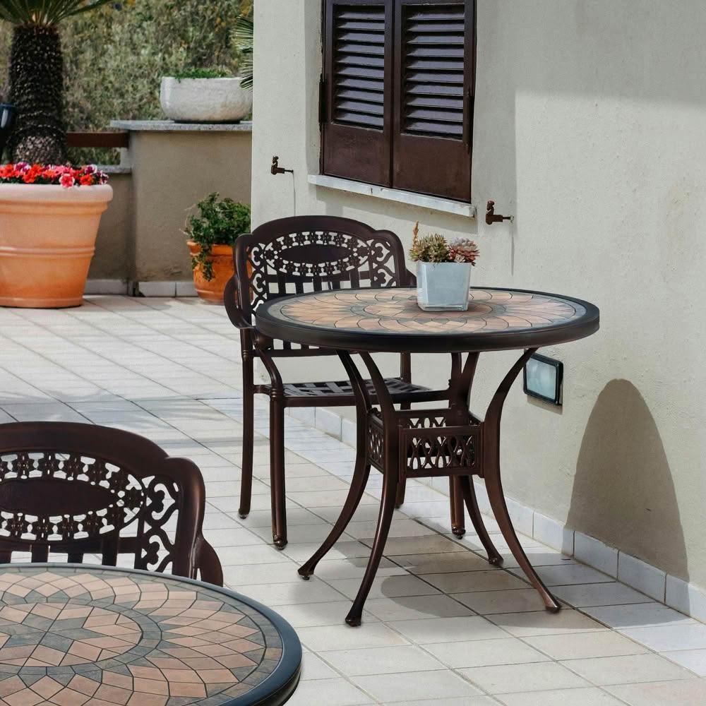 戶外鑄鋁餐桌椅組 瓷磚拼花圓桌 方桌 長桌 庭園陽台咖啡廳 歐式復古設計感