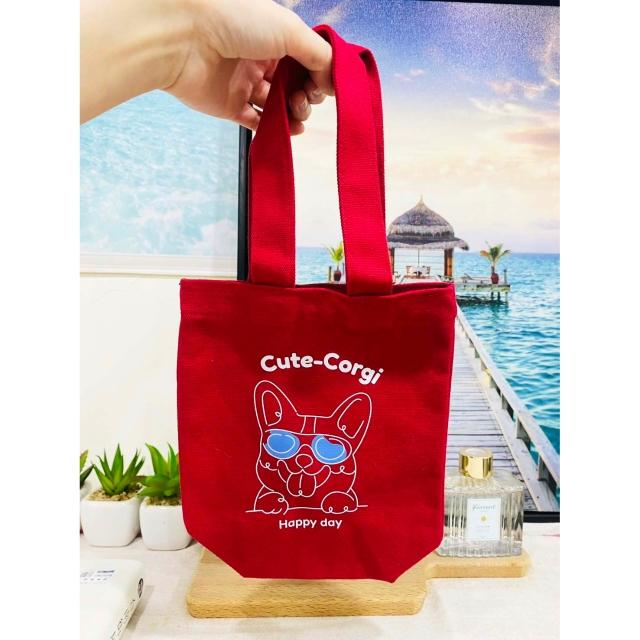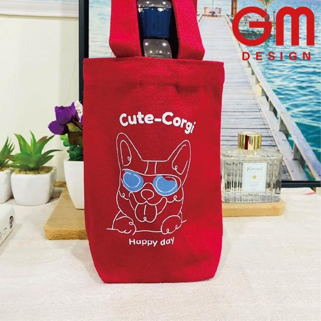 Stylelife可愛插畫帆布飲料/水壺提袋⭐戴墨鏡柯基