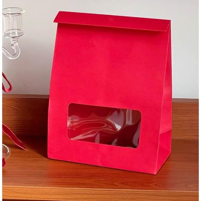 優選~ 台灣現貨 新年/聖誕日式開窗手提自立袋 雪Q餅可立式包裝紙袋 自立袋 金屬釘扣 牛皮紙包裝袋 牛軋糖包裝袋