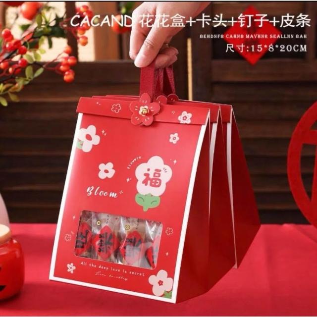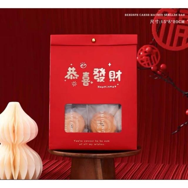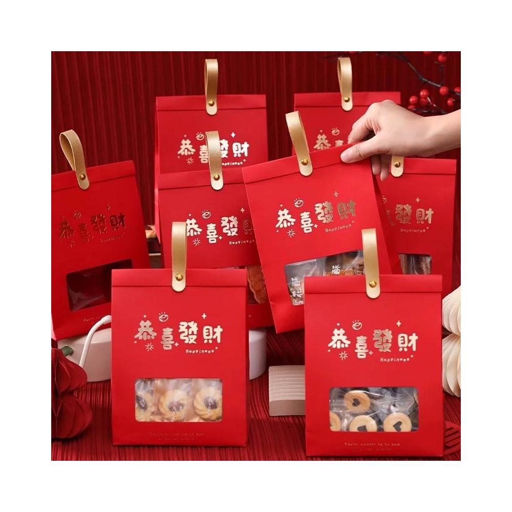 優選~ 台灣現貨 新年/聖誕日式開窗手提自立袋 雪Q餅可立式包裝紙袋 自立袋 金屬釘扣 牛皮紙包裝袋 牛軋糖包裝袋