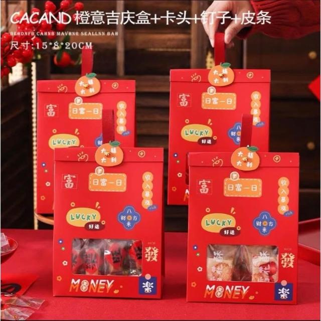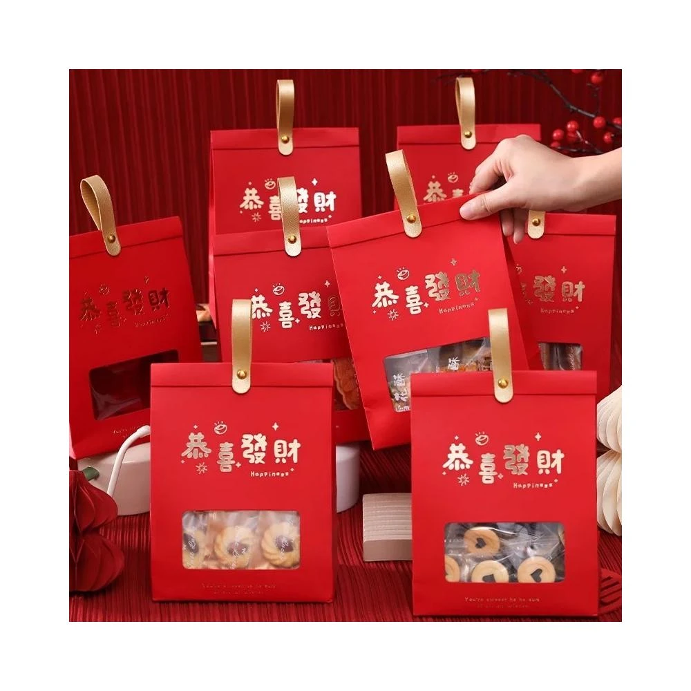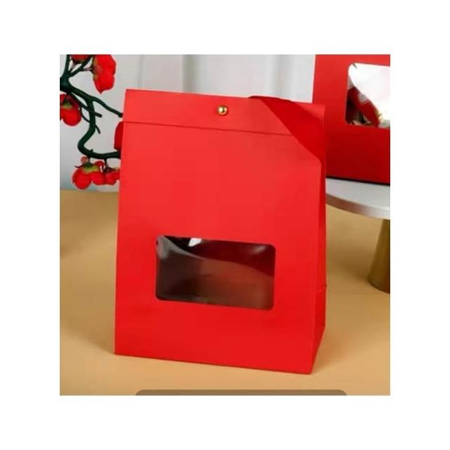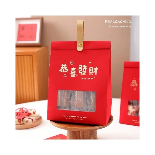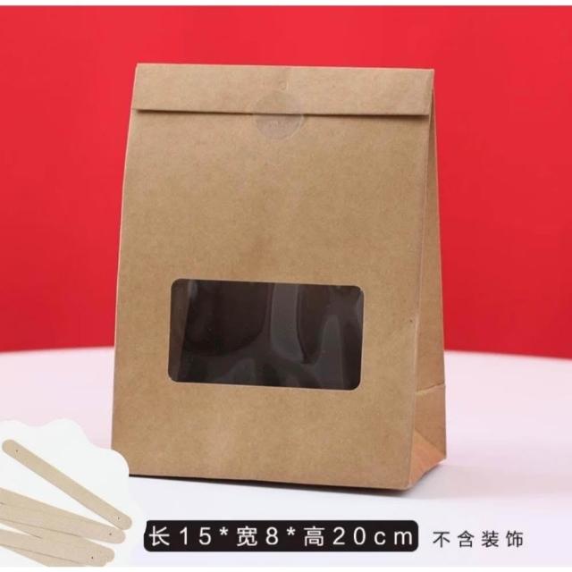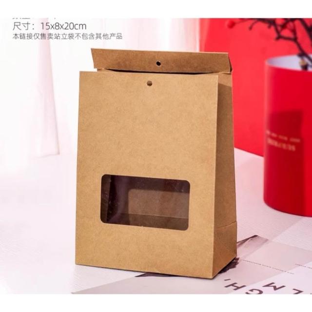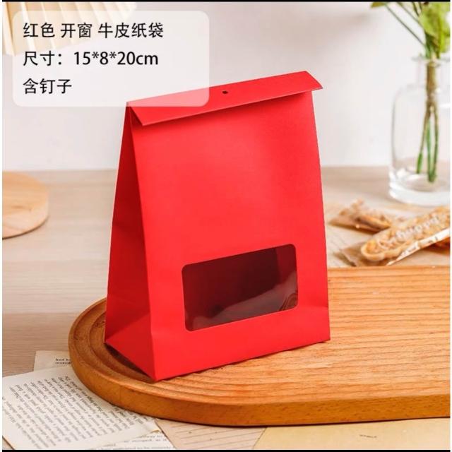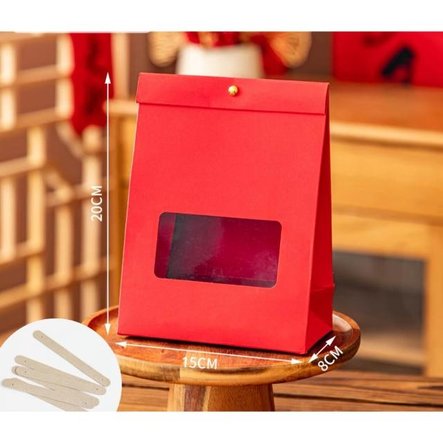 優選~ 台灣現貨 新年/聖誕日式開窗手提自立袋 雪Q餅可立式包裝紙袋 自立袋 金屬釘扣 牛皮紙包裝袋 牛軋糖包裝袋
