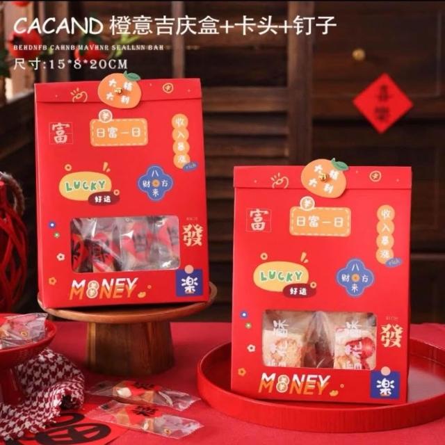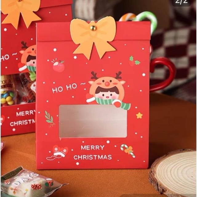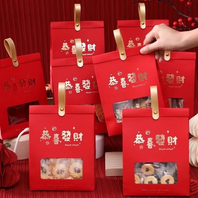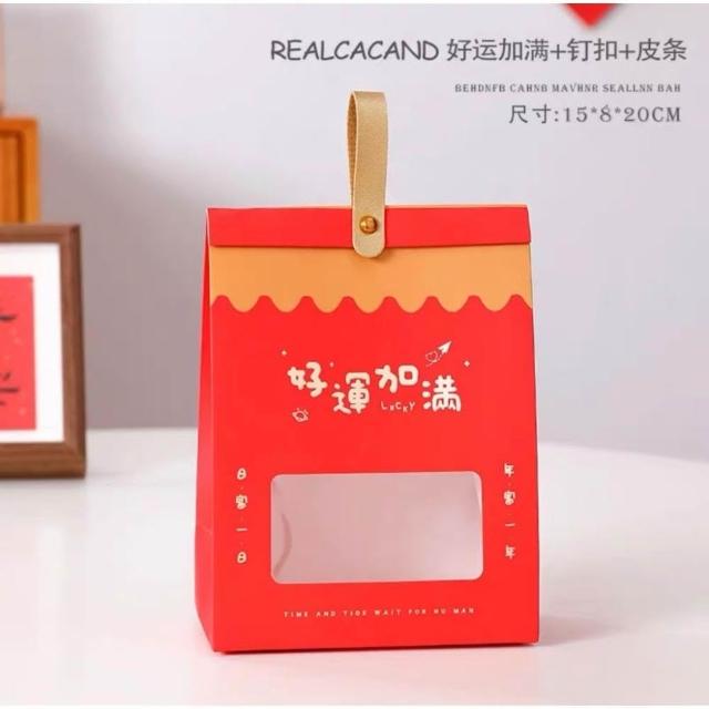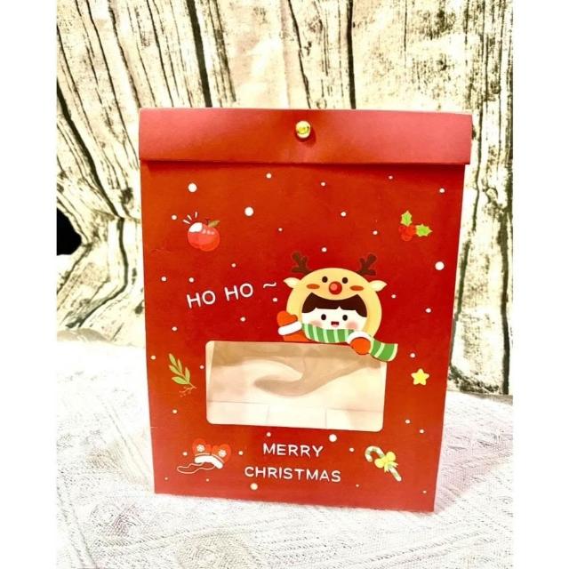 優選~ 台灣現貨 新年/聖誕日式開窗手提自立袋 雪Q餅可立式包裝紙袋 自立袋 金屬釘扣 牛皮紙包裝袋 牛軋糖包裝袋