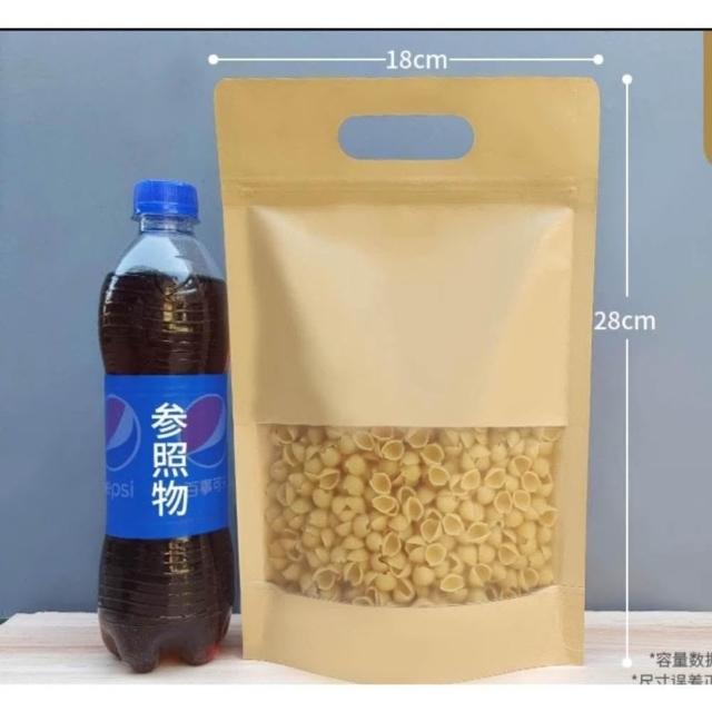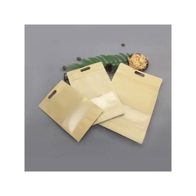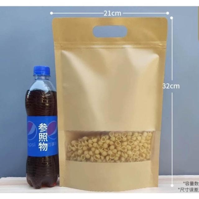 優選~台灣現貨 牛皮手提開窗夾鏈立袋(50入) 包裝袋.夾鏈袋.食品包裝袋.堅果袋.夾鏈站立袋.糖果袋.牛皮包裝烘培袋.