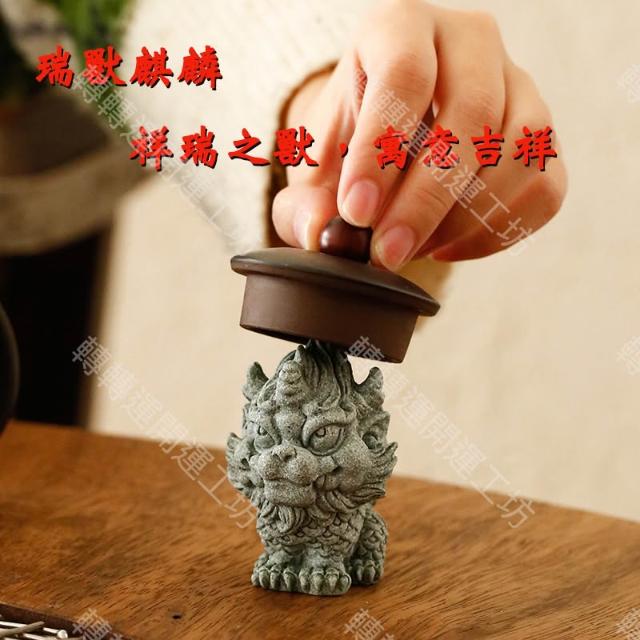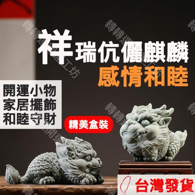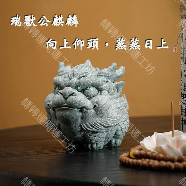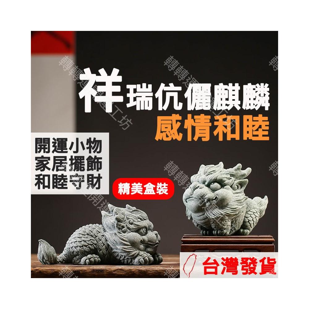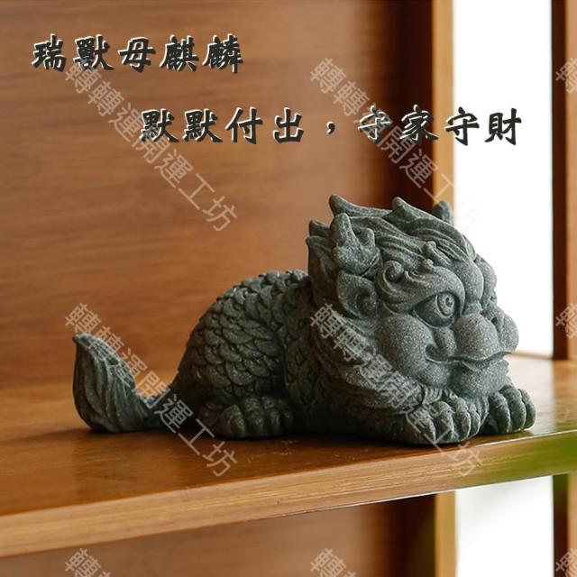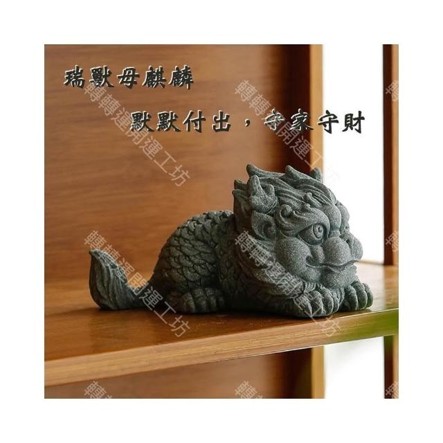 🔥轉轉運台灣現貨🔥 旺福麒麟 公母 青砂石 伉儷瑞獸 風水擺件 麒麟 流水擺飾 風水 招財流水 居家 石獅 醒獅